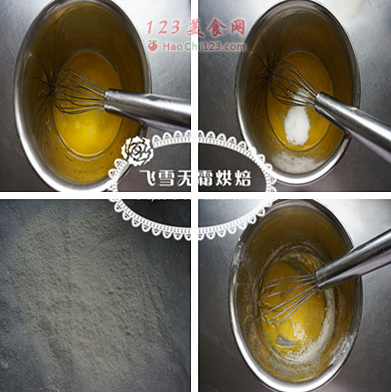 4、将过筛后的低筋面粉倒入容器中,搅拌均匀。