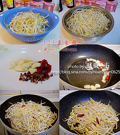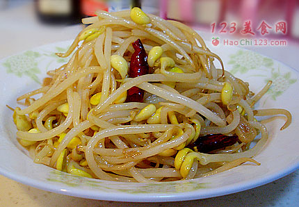 2、将黄豆芽在清水下反复冲洗,洗掉黄豆壳后捞出沥干水分。