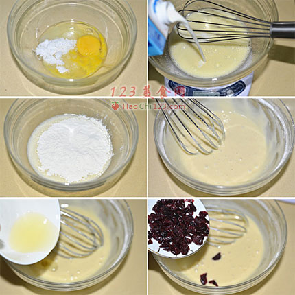 6、加入蔓越莓干拌匀,留少许表面装饰用。