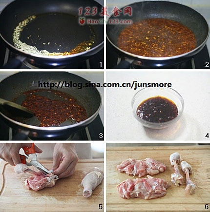 5、接着处理鸡腿。用剪刀将鸡腿剪开,将鸡腿肉从骨头上整块剥下,并用剪刀剪断连接部位。