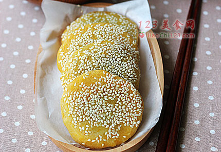 3、在小饼上抹点水,芝麻不脱落,煎饼的火不能太大防止煎糊。[sushi.laoyanhuo.com]