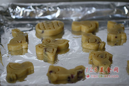 8、排入烤盘放进预热好190度的烤箱,中层,上下火,烤10分钟左右即可。