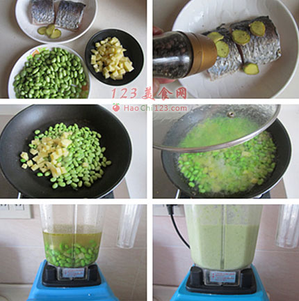 1、豆泥是毛豆米加入土豆一起煮熟,土豆能增加汤汁的粘性,调好味后搅打成泥。