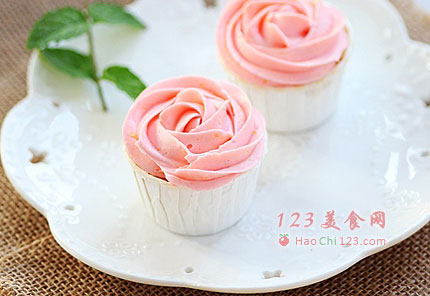 21、将奶油霜装入裱花袋,挤在蛋糕表面,纸杯蛋糕就完成了。