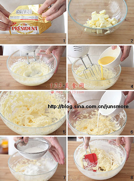 1、纸杯蛋糕的制作实际上非常简单。做好蛋糕胚和奶油霜以后,把奶油霜挤在蛋糕上就可以了。这款纸杯蛋糕的蛋糕胚和奶油霜的制作都使用了大量黄油,口感十分浓郁香醇,也正因为如此,黄油的口感直接决定了蛋糕的口感。我使用的是总统黄油,因为它是发酵黄油,乳香浓郁,入口即化,做出的蛋糕真的很香很可口。