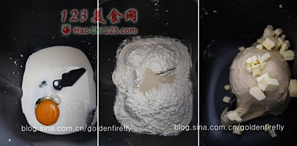2、继续加入黄油块,开始搅拌动作,约20分钟后检查面团,出现厚膜。
