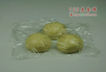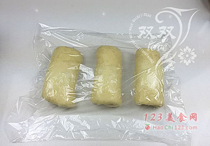 6、将面团均分成3份,滚圆,盖保鲜膜松弛10分钟(松弛是为了下一步更好操作,夏季天热,千万别放太久,发大了也不好哈)。
