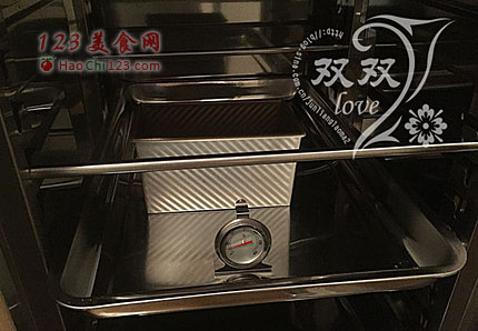 11、将土司放入发酵箱,进行二发(温度38度,湿度85%)。