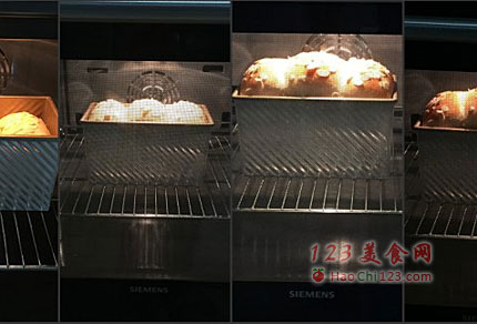 13、烤箱预热,180度,烘烤45分钟左右(图为进炉后的发展状态图,温度要根据自家烤箱而定,上色后记得盖锡纸,我的烤箱风大,总是吹跑锡纸,所以上色会有点重)。