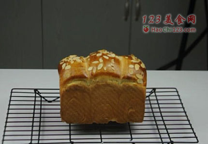 14、土司出炉,晾凉,装入保鲜袋即可(室温保存,不要放入冰箱冷藏,会加速老化哦)。