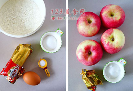 3、等待过程中将苹果削皮,去籽,再切成小丁,锅内放入无盐黄油加热,融化后加入苹果,用中火煮,再加入白砂糖,煮到苹果丁变软上色。