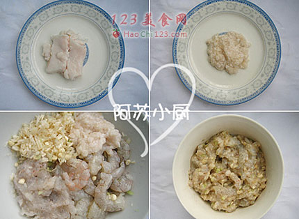 4、肥猪肉剁成泥,备用。