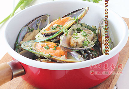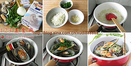2、奶油煮青口,奶油和白酒是烹制的精髓,黄油加热,煸出洋葱、大蒜的香气后,快速放入青口、白酒和奶油,奶油的浓郁,青口的鲜美,白酒的清甜酸冽,让青口混搭入味,最后一把意大利芹的清香味道,更是增加料理的层次。[sushi.laoyanhuo.com]