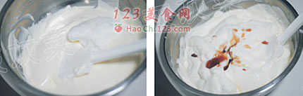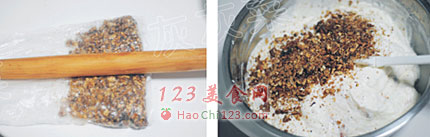 9、压碎的核桃仁拌入冰淇淋原液中。