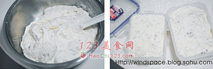 10、拌好的冰激凌原液倒入容器中,冷冻12个小时以上,不需要搅拌。