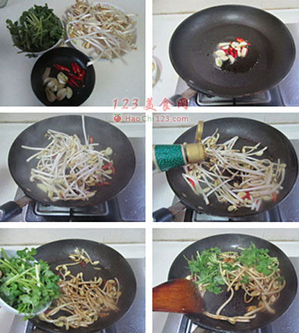 1、花生芽相对于其他芽菜更难容易入味,加入香菜可以增色增香,而加入蒸鱼豉油会更有味道。