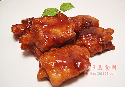 2、色泽红润,酸甜脆嫩是素糖醋排骨这道菜的特色。
