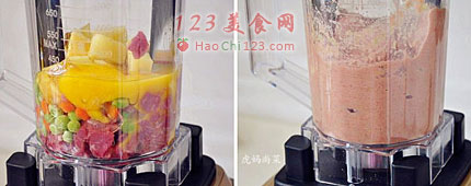 3、把牛肉块、土豆块、豌豆粒、胡萝卜丁入料理机,磕入鸡蛋,再加入盐、黑胡椒粉、五香粉。