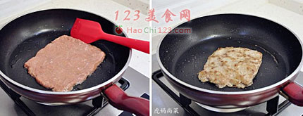6、然后再开火,将土豆牛肉饼两面煎熟即可。全程小火操作,一面煎熟至定型后再翻面。一开始肉饼可以整的稍大些,因为在熟的过程中它还会缩小一点。