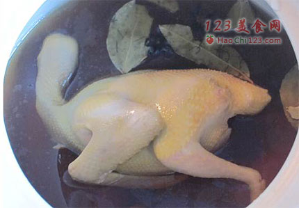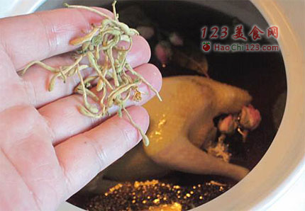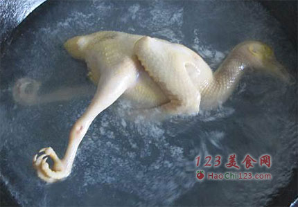 4、加过滤水,倒入砂锅;加入鸽子,再调整水量,没过鸽子的三分之二即可。