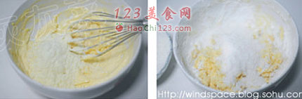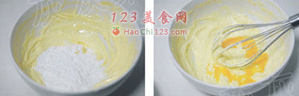3、分3次加入打散的蛋液,每次搅拌至黄油蛋液完全融合再加入下一次。
