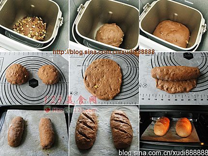2、和除核桃外的其他面团材料一起混合揉至完全阶段,加入核桃揉匀。