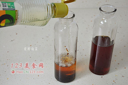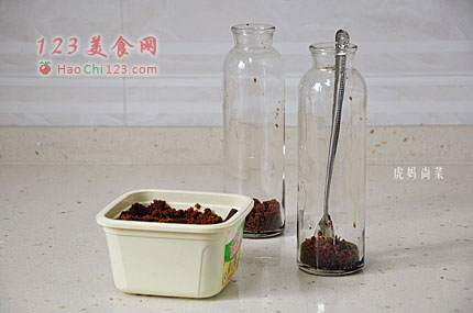 2、瓶中分别加入2勺红糖。