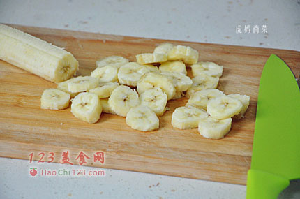 4、香蕉去皮后切成薄片。