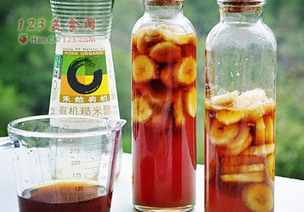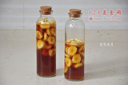 5、最后将香蕉片放入,盖上盖子,放冰箱冷藏24小时后即可饮用。
