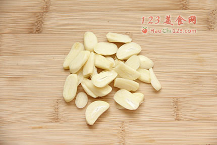 6、大蒜去皮,切成片,备用。