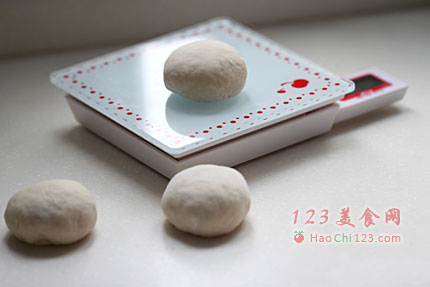 4、取出发酵好的面团,轻揉后分割为一个个40克左右的小剂子。