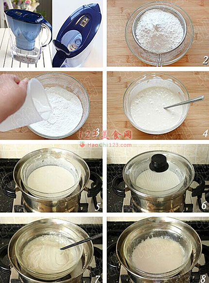 8、待到全部粉团变为半透明色,中间再无白色生浆的颜色即为蒸好了。
