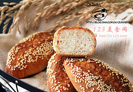 7、面胚表面沾水,均匀的粘上白芝麻,放到温暖处进行二次发酵。