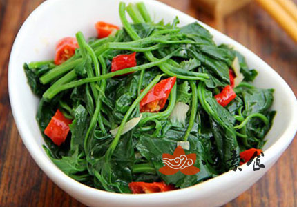 6、炝好的油倒进灰灰菜拌盆里。