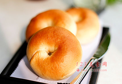 3、煮好的贝果要立即放入烤箱烘焙。[sushi.laoyanhuo.com]