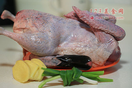 二、步骤:1、将鸭块和葱结、姜片、桂皮放入砂锅中,入水至鸭子的三指以上水位,滴入一些黄酒去腥。