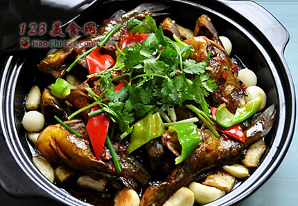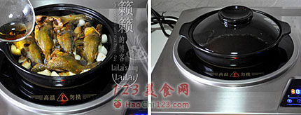 6、扣上砂锅锅盖,继续慢火焗制至鱼肉断生时(约15分钟)。