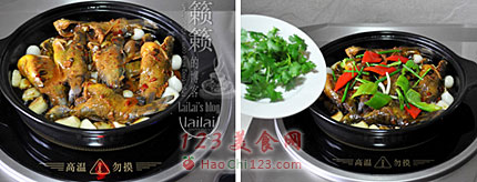8、揭盖后淋点香油,铺上香菜碎即可整锅端上桌食用。