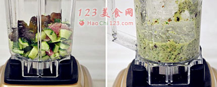 2、所有菜放入料理机,搅打成细滑馅料。