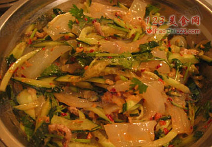 5、然后把这些材料混合在一起,加适量醋、糖、盐和味精拌匀。滴一点儿香油即可。