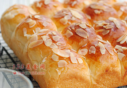 7、二次发酵至两倍大,刷鸡蛋液,撒上杏仁片。