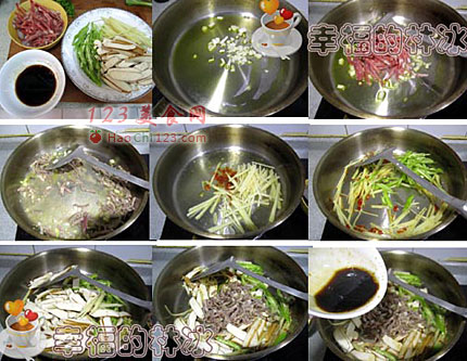 5、另起一锅,热油下姜丝和剁椒煸炒。