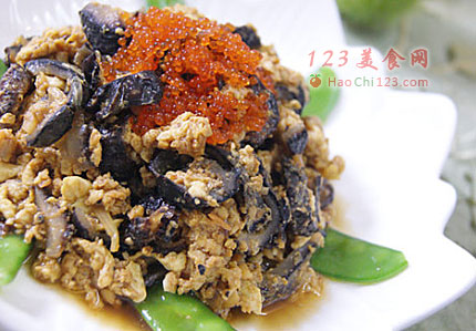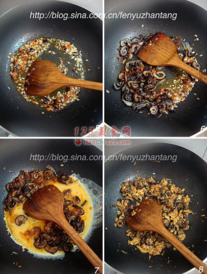 6、倒入海参翻炒入味。