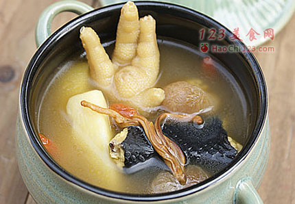 8、蛇肉细腻味鲜,煲成浓汤,香气四溢,放入山药、虫草花、鸡爪、元圆、枸杞、陈皮同煲,味道更具层次感,也更能进一步发挥蛇汤的功效。