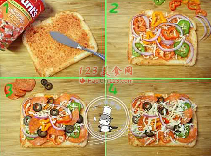 3、添加的各式Topping料,可以更据自己喜好选择,比如火腿肠代替皮萨肠等。
