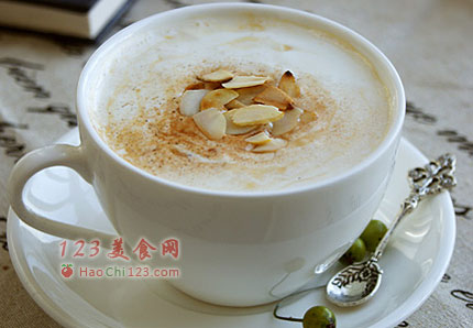 3、巧克力印度奶茶,细润的巧克力味儿奶茶,散发着淡淡奶油香。制作的关键是先把印度奶茶煮好,然后搅入巧克力糖浆,浮一层鲜奶油,再撒点儿酥脆的杏仁儿片,想不喜欢都不行。