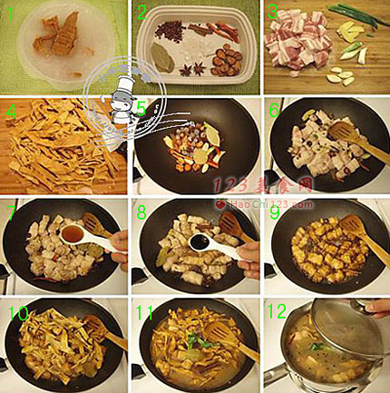 12、倒入另一口较深的锅小火炖至肉酥烂、笋入味即可。