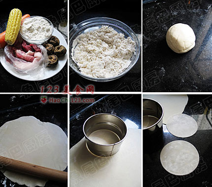 7、取一片圆面片,放入内馅,包成自己喜欢的形状。