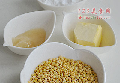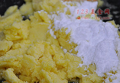 6、将搅拌好的绿豆泥倒入锅中,加入糖粉和蜂蜜,小火炒匀。每个人对甜度的感觉不一样,我建议加糖时分次加入,炒到最后你可以尝一尝绿豆泥的甜度,不够甜再继续加糖。