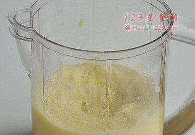 4、用搅拌机将蒸熟的绿豆搅拌成泥。用勺子铲子也可以把绿豆按压成泥,但那样太累了,还是用搅拌机更容易,就是得多洗一次搅拌机。刚蒸好的绿豆带有水汽,不用加水也能用搅拌机搅拌成泥。如果机器不给力,稍微加点水搅拌吧,但别多加,要不然待会儿炒馅儿还得把水炒干。